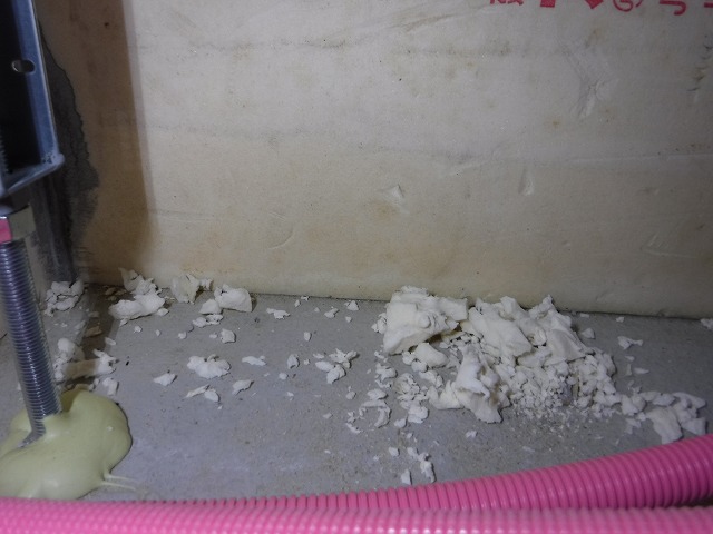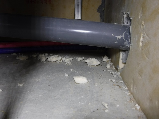 洗面脱衣室に有る床下点検口の蓋を開けて