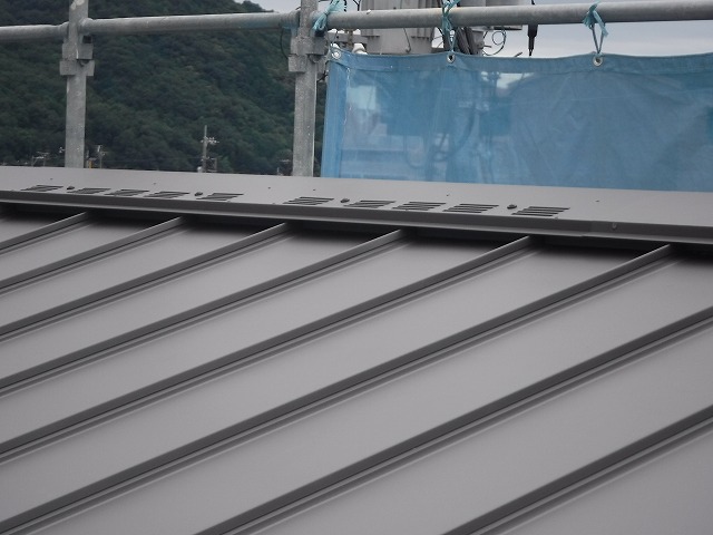 片流れ屋根の棟頂部に棟換気口を設置します。