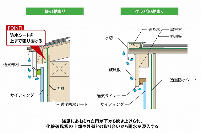 壁内に雨水浸入を防ぐ事と小屋裏換気に