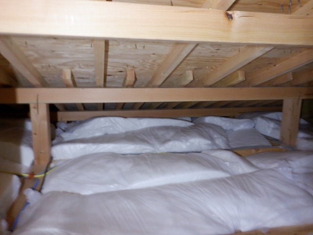 小屋裏から見る2枚目の断熱材は