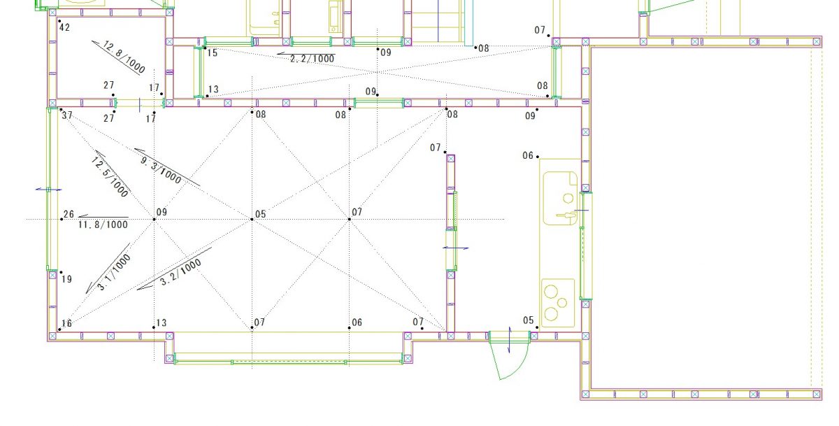 建物全体の傾きなどの傾斜傾向を図面にて表現する事で、